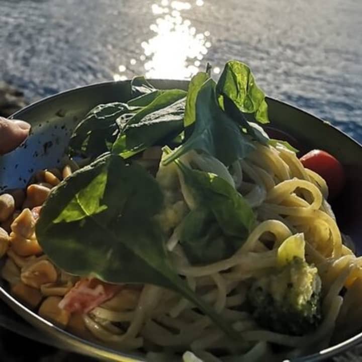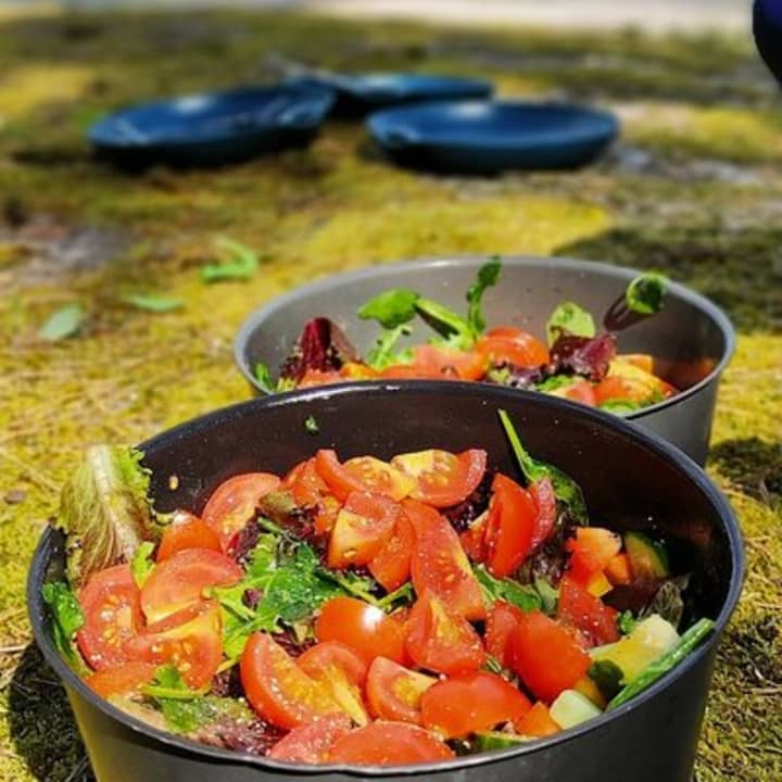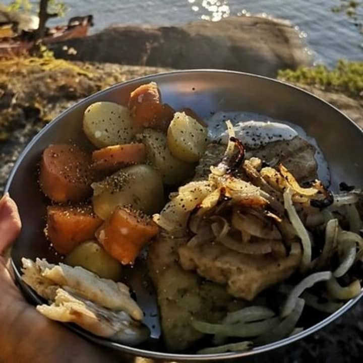 🔥 Enjoying organic meals cooked on an open campfire.