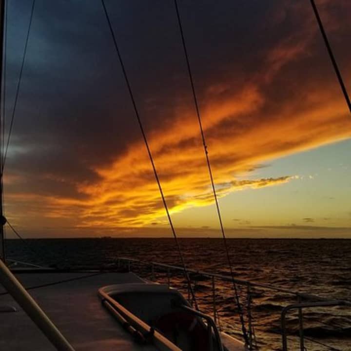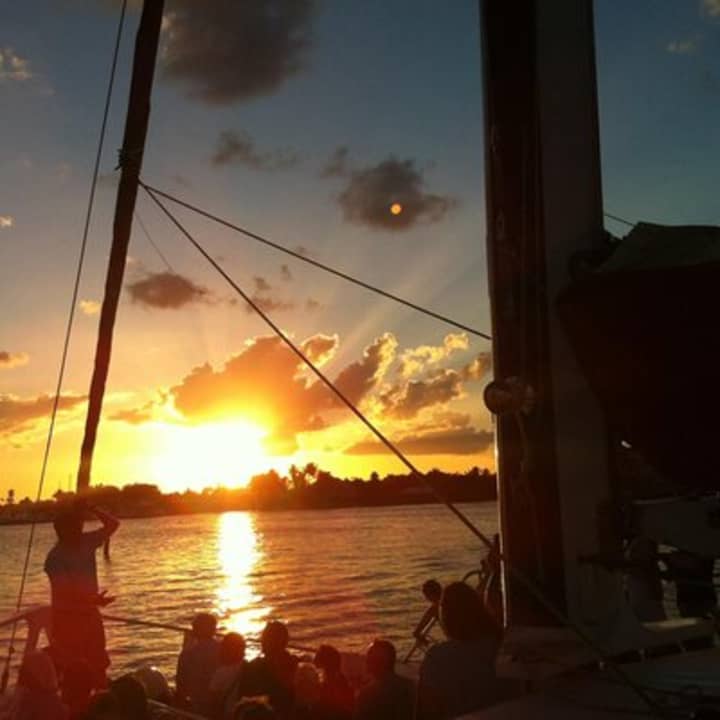 ⛵ Feel the sea breeze in your hair, groove to tropical music, and toast with complimentary champagne as the sun sets in fiery hues over the horizon.