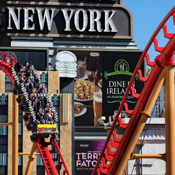 Head over to New York New York Hotel and Casino for an adrenaline rush on the Big Apple Coaster! Zoom at nearly 70mph, plunging from heights of 76 feet to an even more thrilling 144-foot drop. Scream and laugh through dizzying twists, turns, loops, spirals, and a heart-stopping dive loop, all while soaring above the iconic Las Vegas Strip. Get your tickets for The Big Apple Coaster!