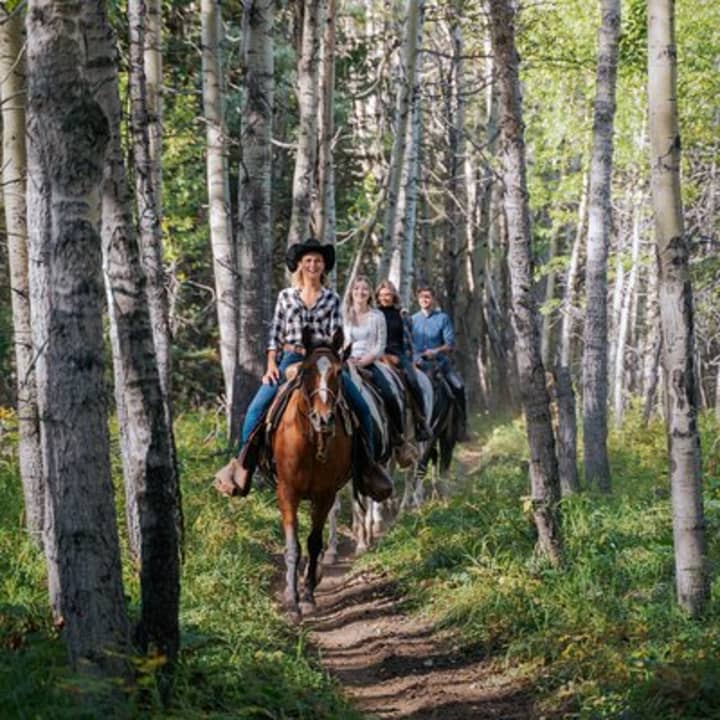 Gear up for an adventure that's totally unique! Dive into the saddle for a 1.5-hour horseback journey perfect for those looking to level up from our Buffalo Loop without jumping straight into the Ridge Ride. Trek through an enchanting aspen grove, ascend past our picturesque pond with breathtaking views of Mount Kidd, then meander down a rocky cut surrounded by Lodgepole Pines, all the way to our buffalo herd. Whether you're new to riding or practically a pro, this experience has something for everyone. Get your tickets for Valley Vista 1.5 Hour Horseback Trail Ride in Kananaskis!