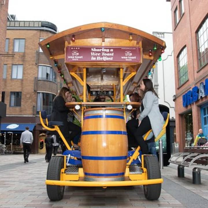 Hop on for a wild ride with the Original Belfast Group Party Bike - Wee Toast Tours! Dive into the heart of Belfast in the coolest way possible. Pedal through the city with your squad, toast in hand, and lap up the vibrant culture, stunning sights, and rich history. Ready to flex those leg muscles? Our eco-friendly bikes need at least 8 pedal-pushers to conquer the city streets, but don’t sweat it if you’re flying solo or with a smaller crew – we’ll pair you up! Whether you’re 8 or 15 strong, grab your spots. More than 15? No problem, just book extra bikes to ride side by side. Let’s make unforgettable memories on this epic city adventure. Get your tickets for Original Belfast Group Party Bike - Wee Toast Tours!