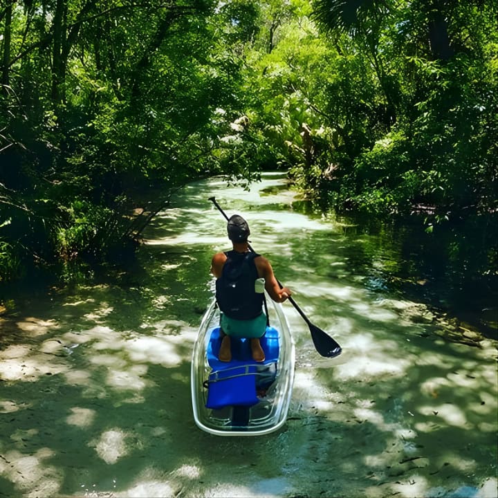 🚣 Explora las aguas cristalinas del río Rainbow en un kayak transparente.