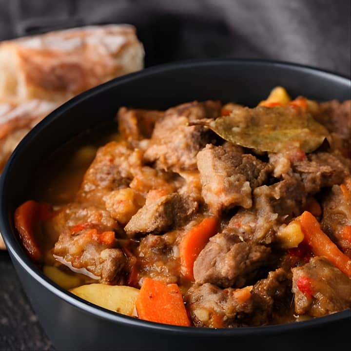 ✔️ Irish stew, complemented by soda bread with sausage.