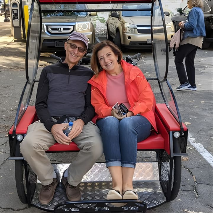 🚴 The pedicab can comfortably seat 2 adults, or 2 adults and a small child, without any extra charges.