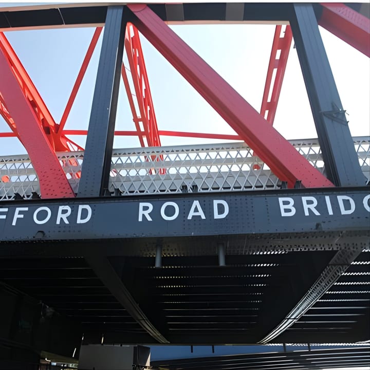 ⚽ Marvel at the iconic Old Trafford, the home of Manchester United, from a unique riverside perspective.