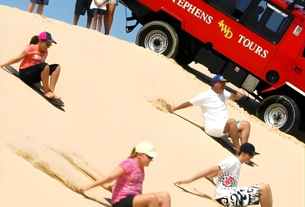 Escape Sydney for a day and plunge into the wonders of Port Stephens! Set sail from Nelson Bay on a Dolphin Watching cruise to meet the 140 local bottlenose dolphins. Then, hit the Stockton Bite Sand Dunes in Anna Bay for an epic sandboarding adventure – they're the biggest coastal dunes down under! Plus, savor a complimentary wine tasting near the famous Hunter Valley. Our friendly guides will fill you in on all the local lore. All aboard for a breezy 2.5-hour bus ride to adventure! Get your tickets for Port Stephens Day Tour with Dolphin Cruise, 4WD tour, Sandboarding!