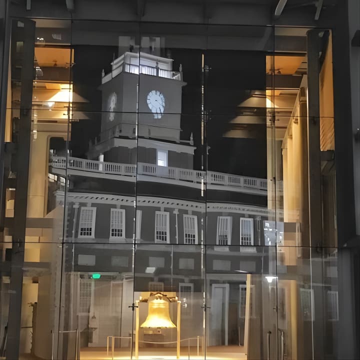 🏛️ Maravíllate con los hermosos sitios históricos iluminados, incluida la Campana de la Libertad y el Salón de la Independencia.