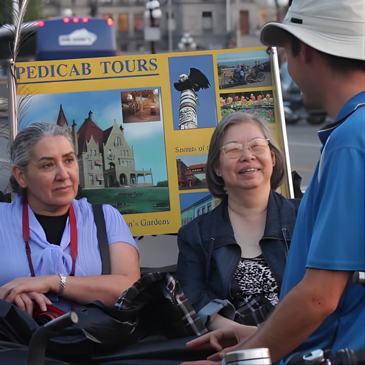 Hop on a thrilling 3-hour Pedicab Tour designed exclusively for cruise ship visitors docking in Victoria, BC! We've got you covered with super convenient pick-up and drop-off right at the terminal, ensuring you're back in time with zero stress. Whether you're arriving with the early birds or as the sun sets, we've got a slot for you. Dive into Victoria's stunning sights, irresistible charm, and warm vibes. Get your tickets for Pedicab Tour of Victoria from Cruise Ship Terminal!