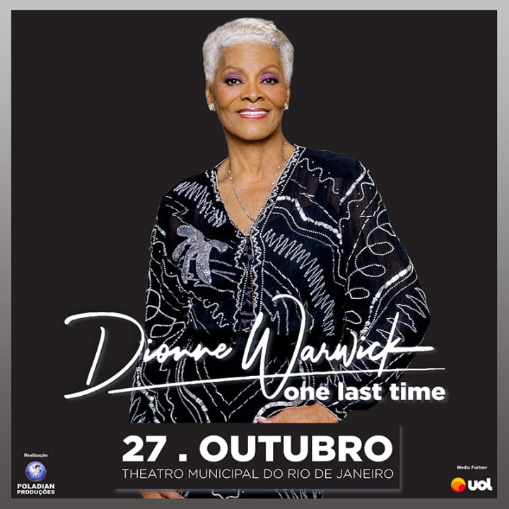 Cinco vezes vencedora do Grammy, Dione Warwick vem ao Rio em outubro para a única apresentação. Uma das lendas da música internacional, ela chega ao país logo após ser homenageada no The Rock & Roll Hall of Fame, nos Estados Unidos.