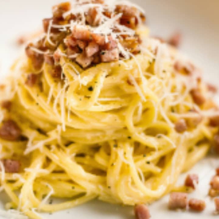 🧀 Experience the blend of fresh pasta, bacon, and cheese in one mouthwatering dish