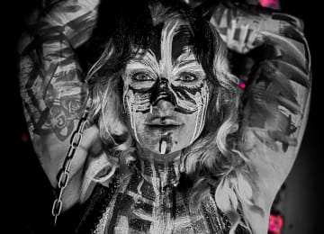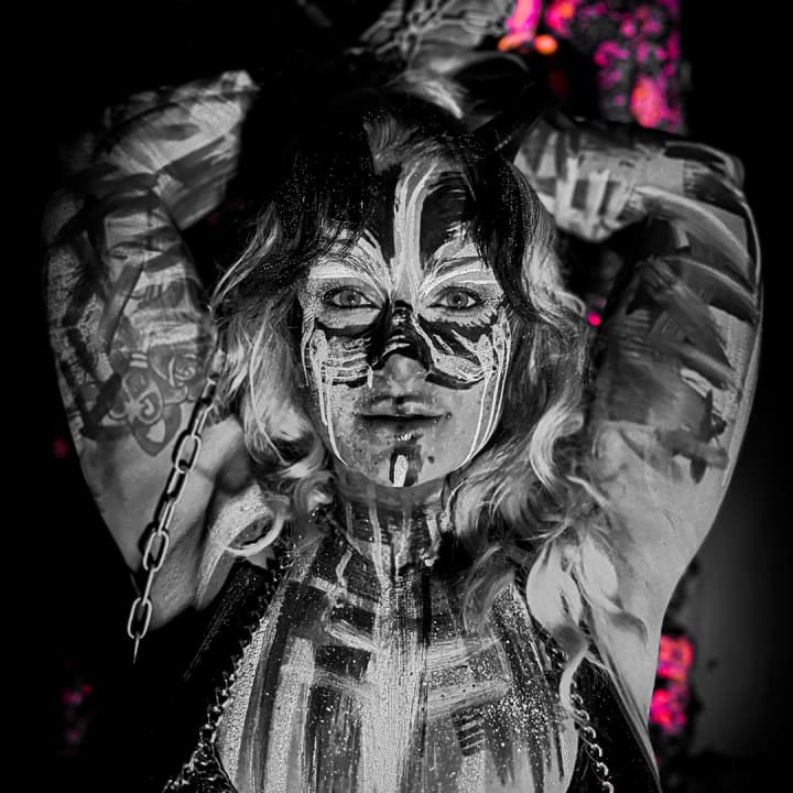- Expressive, corpse-painted models with bold contrasts