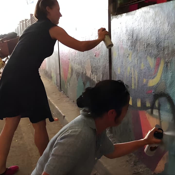 π¨ Unleash your creativity in a legal street art area with spray paint provided.