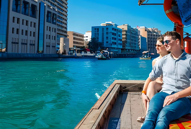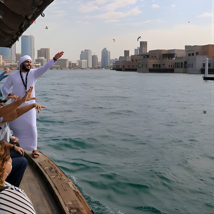 🛥️ Glide through the creek on a traditional Abra water taxi, capturing the essence of Dubai's trading history.