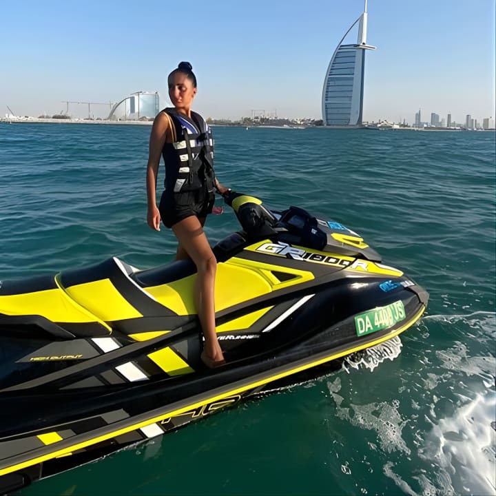 🌊 تجاوز برج العرب الشهير بالدراجة المائية.