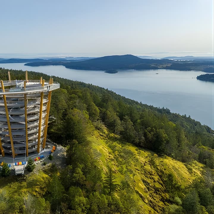 Get ready to be wowed by the Malahat SkyWalk! Imagine gazing out from 250 m up, with jaw-dropping 360-degree views of islands, fjords, and mountains. Stroll the 600 m treetop walkway, surrounded by majestic Arbutus and Douglas Firs. For the daredevils, there's a net to cross and an “Insta-famous” spiral slide to zoom down. Sip on local drinks and nibble snacks amidst stunning scenery, just a 35-minute drive from Victoria. It's an iconic island adventure for everyone, fully accessible and loads of fun. Get your tickets for Malahat SkyWalk General Admission!