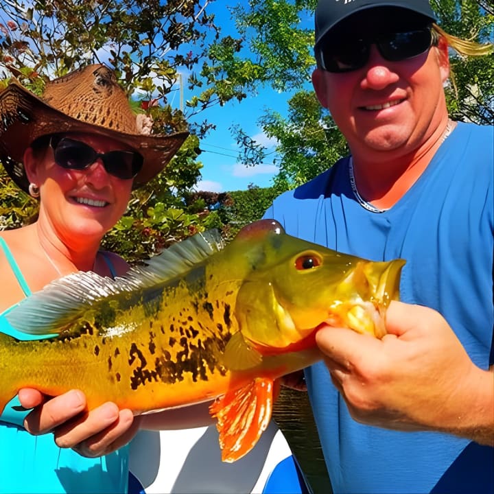 Dive into the vibrant waters of Boynton Beach for an epic fishing adventure like no other! Join us on a private journey through stunning lakes and canals, all from the comfort of a spacious 21-foot boat. With a guide to lead the way and all gear provided, you're set for a chill day catching the exotic butterfly peacock bass, Clown Knifefish, and more. Whether you're perfecting your technique or just here for the vibes, we've got unlimited tackle, bait, and refreshing bottled water to keep you going. Get your tickets for Peacock Bass Fishing Trip in Boynton Beach!