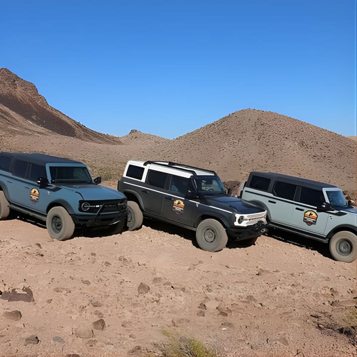 Súbete a un Bronco de lujo personalizado y salta a la carretera para disfrutar de un emocionante viaje todoterreno Supera obstáculos, reptando por las rocas, y luego relájate con un sabroso almuerzo y un descanso en el impresionante circuito de dunas de Redstone. Tu aventura comienza bien temprano en el Lago Las Vegas, conduciéndote a través de los impresionantes paisajes de la Zona Recreativa del Lago Mead hasta la pintoresca carretera de Boathouse Cove. Prepárate para unas vistas asombrosas de terrenos escarpados, montañas majestuosas y el resplandeciente lago. Perfecto para los amantes de la aventura en sus visitas turísticas. ¡Consigue tus entradas para la Aventura Todoterreno Guiada en Las Vegas a Boathouse Cove!