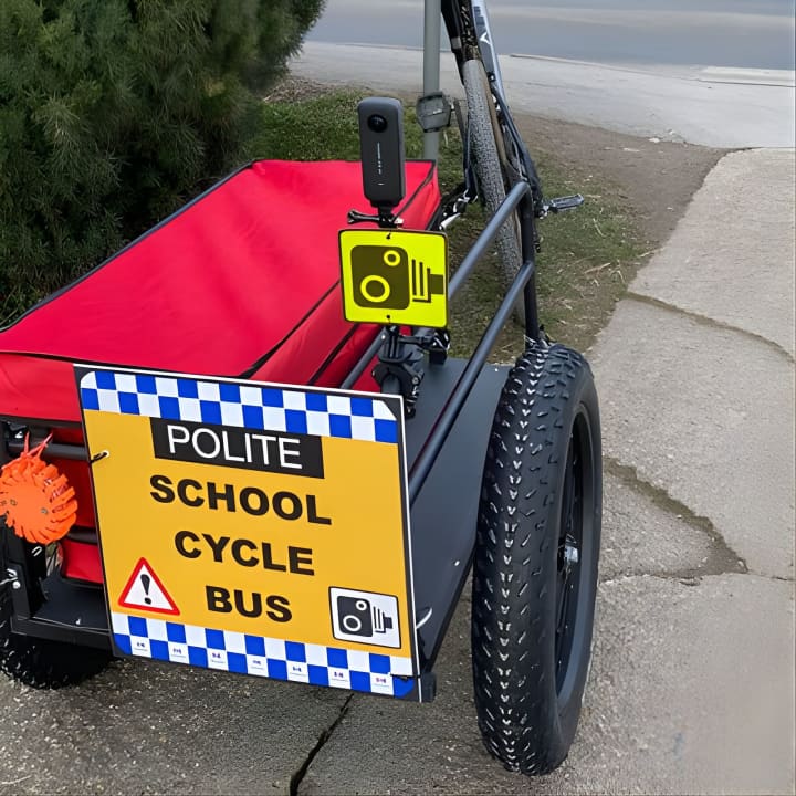 ✔️ A fully equipped Bike bus trailer which you can admire.