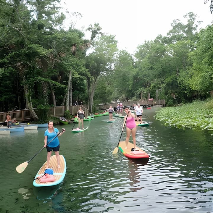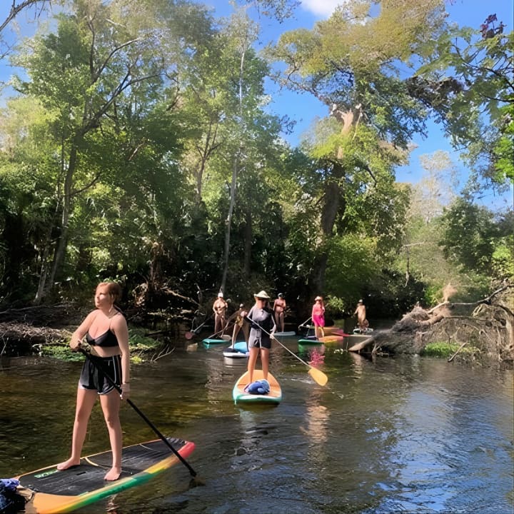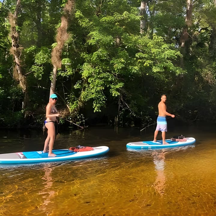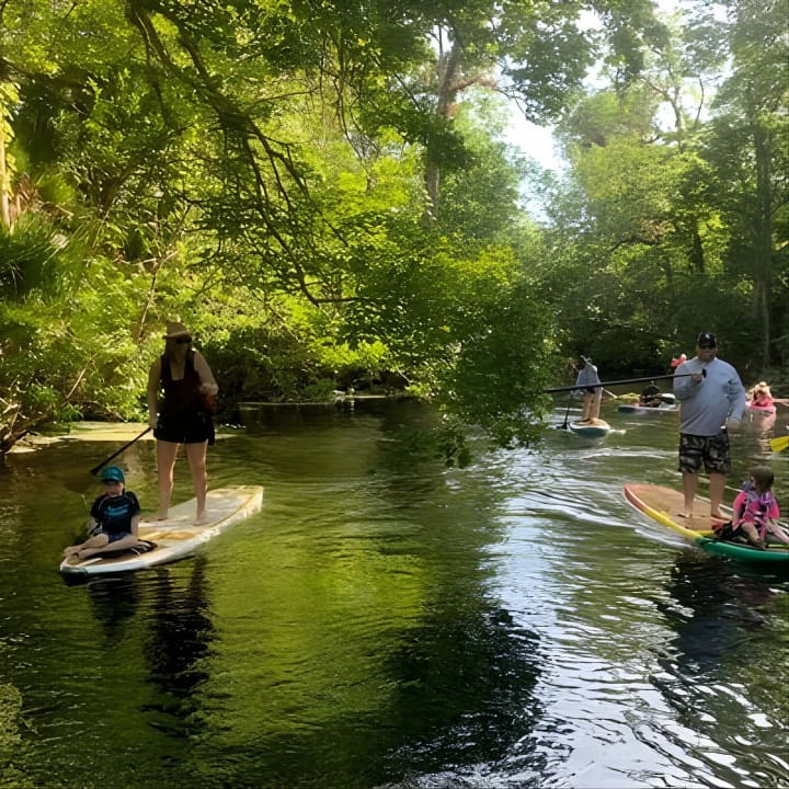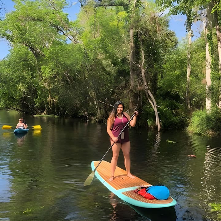 Dive into an unforgettable adventure at Wekiva Island, where you'll master the art of paddleboarding on the stunning Wekiva River. Glide through crystal-clear waters, explore the lush landscapes of Florida, and maybe even spot some wildlife along the way. Swim in the refreshing springs, enjoy a tranquil hike, or simply soak in the serene beauty of Wekiva State Park. With no motorboats to disturb the peace, you'll paddle smoothly under a canopy of trees, enjoying the perfect conditions for both newbies and pros. Don't miss out on this unique experience. Get your tickets for Paddleboard in crystal clear Spring water! Beginners welcome! Private location.