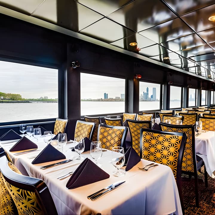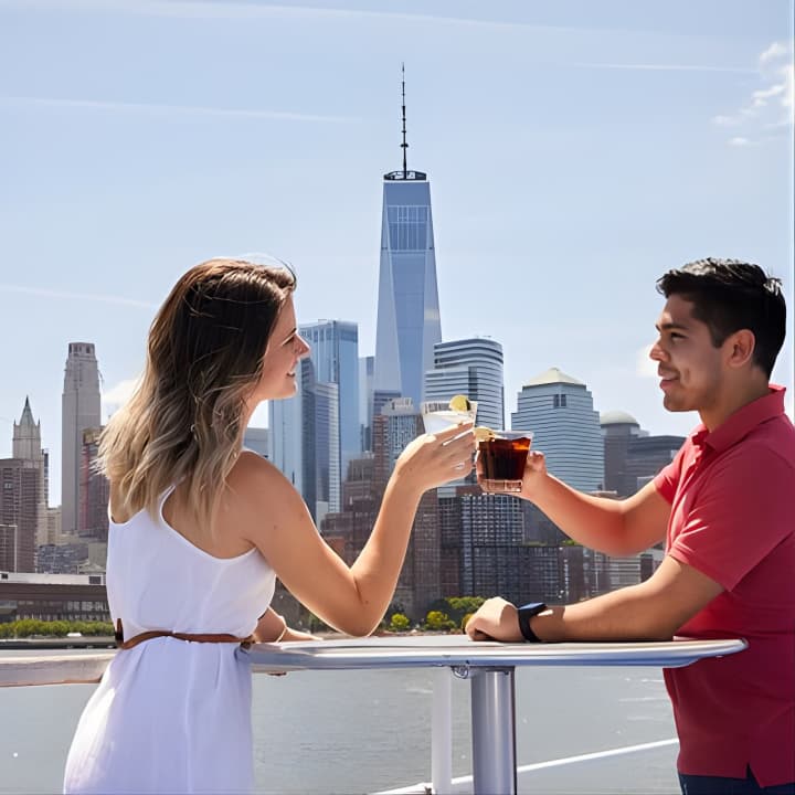Ready for an unbeatable day out? Hop on a lively lunch cruise leaving from Lincoln Harbor Marina in Weehawken, NJ! Feast your eyes on the iconic NYC skyline, including the Empire State Building, One World Trade Center, and the Statue of Liberty, all while enjoying a chef-prepared buffet. With top-notch service, DJ tunes, a rooftop lounge, and onboard games, it's the coolest way to soak up the sights. Get your tickets for New Jersey Lunch Cruise!