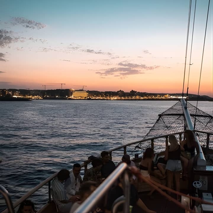 🎵 Music by the onboard DJ during a sunset sail.