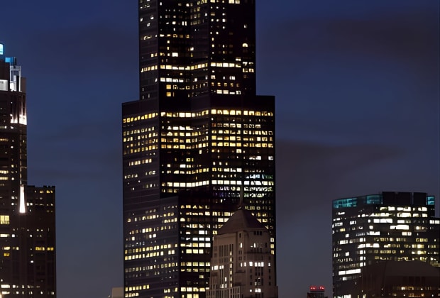🌆 Glide through Chicago's illuminated skyline at night.
