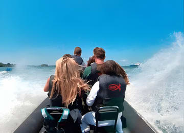 Jump aboard Singapore's premier military-style speedboat for a thrilling ride to the Southern Islands! With high-performance and shock-absorbing seats, you're in for a comfy yet exhilarating journey. Plus, with tunes blasting, it's the perfect mix of chill and adventure. Get your tickets for Swim N Chill on a Military Style Speedboat!