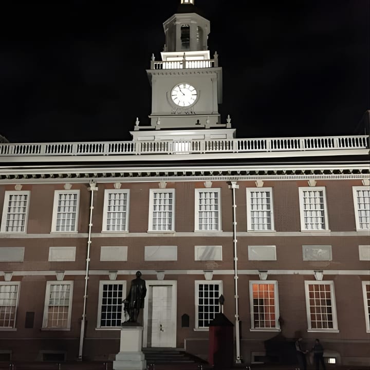 🌃 Stroll the historic cobblestone streets of Philadelphia under the moonlight.