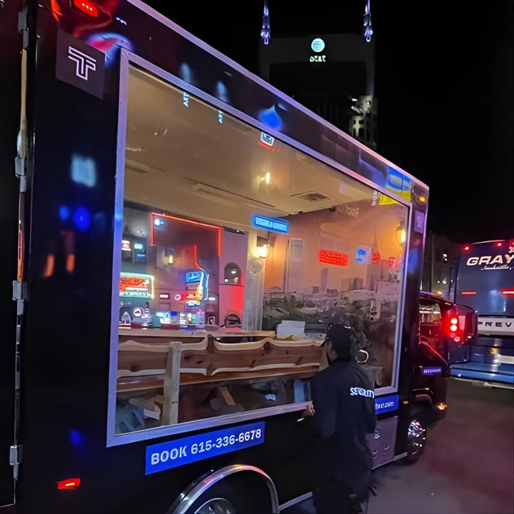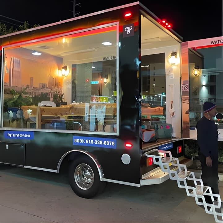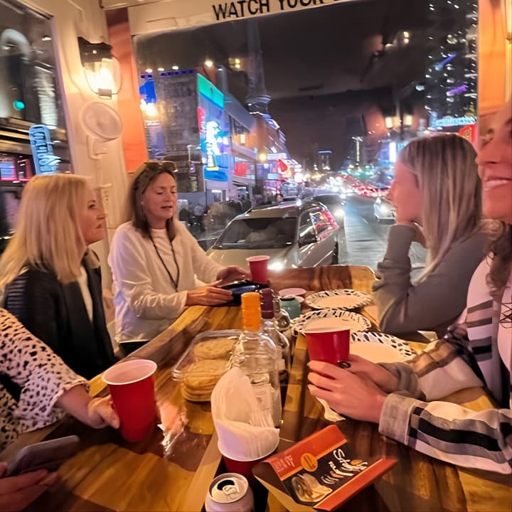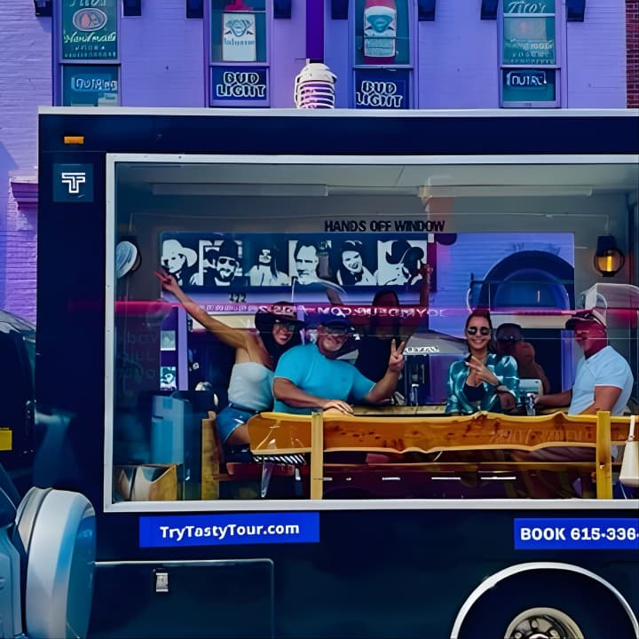 Get ready to elevate your Nashville vibe in a way that's as unique as a unicorn sighting! Join us on the ultimate FIVE STAR Party Tour that's perfect for everyone, from families to friends. Hop aboard our luxury, climate-controlled vehicle with floor-to-ceiling glass walls, offering you breathtaking panoramic views of the city. While you tour Nashville's hottest spots like Music Row, the Gulch, and the iconic Broadway, you can eat, drink, and groove to great music at our stunning live edge table. Don’t forget to bring your favorite snacks and beverages – we’ve got the music, cooler, cups, and ice covered. Whether it's a birthday, anniversary, or just because, this 90-minute downtown adventure promises unmatched fun and memories. Kids are welcome too, as long as they don’t require a car seat. Get your tickets for Temp Controlled 3D Panoramic Glass Public Tour-Drink & Eat!