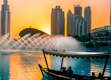 ✔️ الوصول إلى ممشى نافورة دبي حيث تتراقص المياه بتناغم مع الضوء والموسيقى.