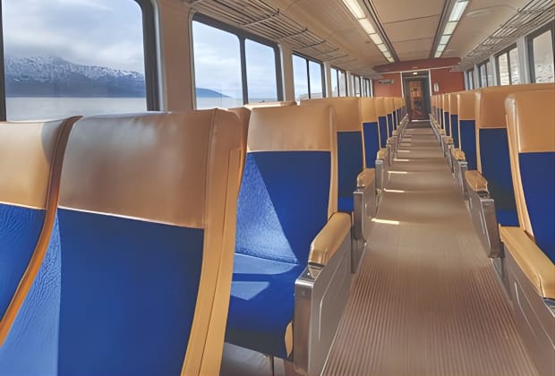 ✔️ One-way rail transportation from Anchorage to Seward, departing at 6:45 am and arriving at 11:15 am.