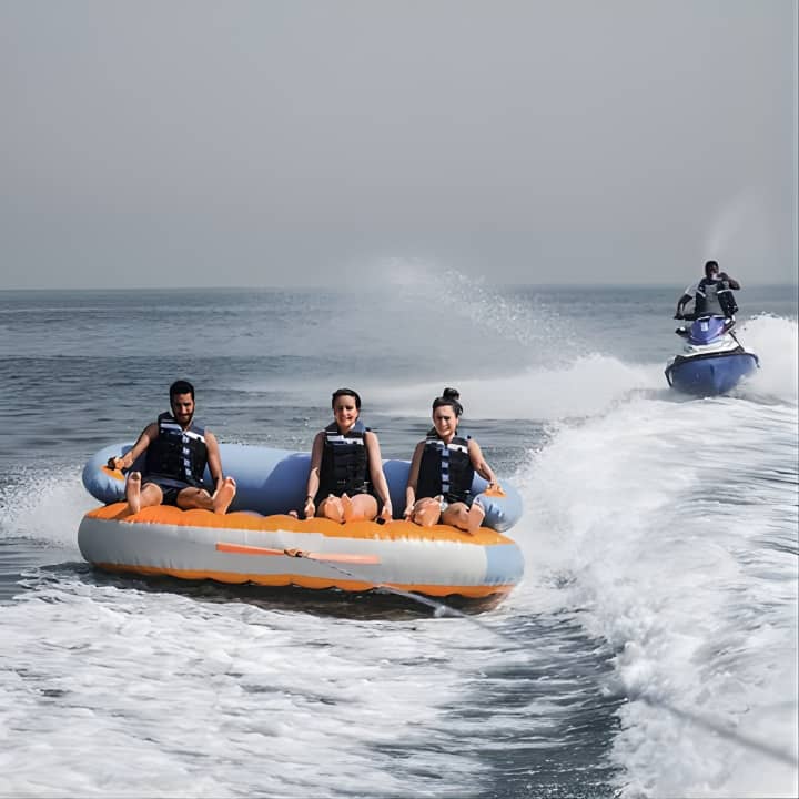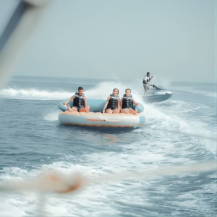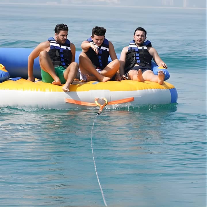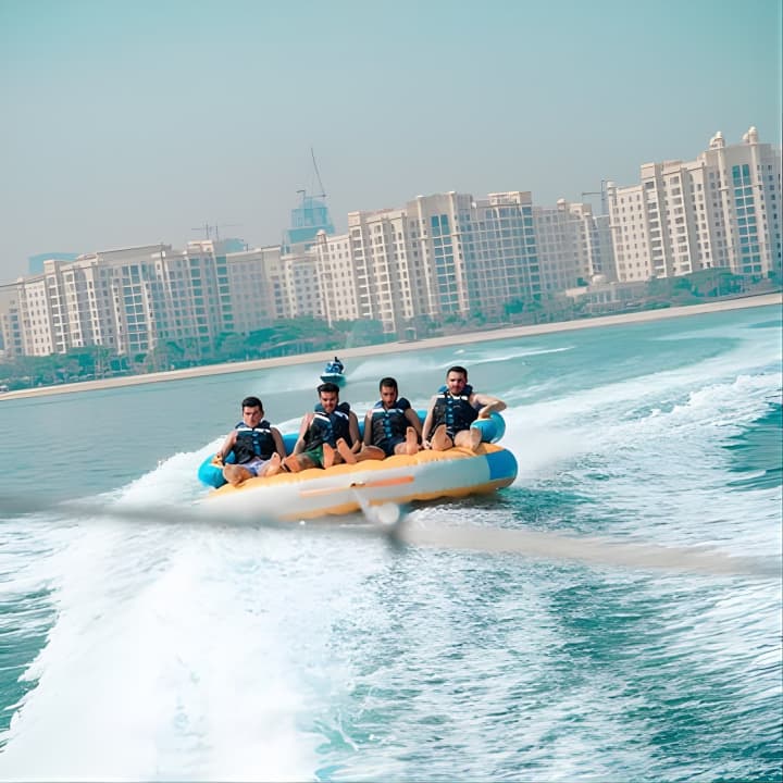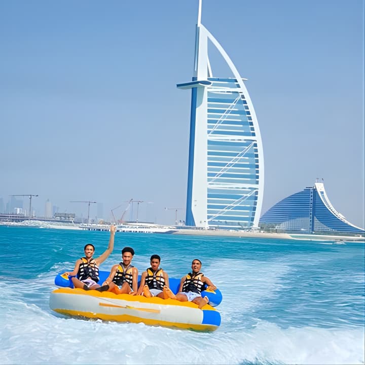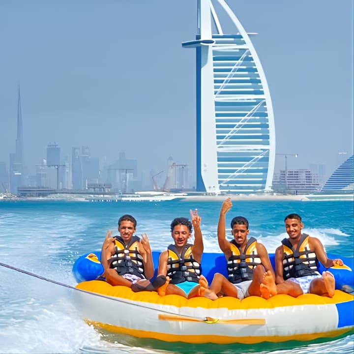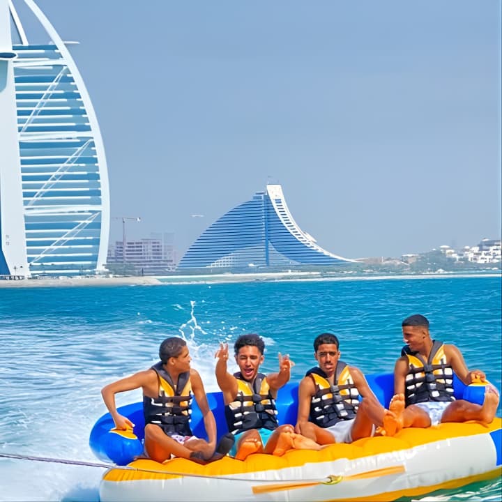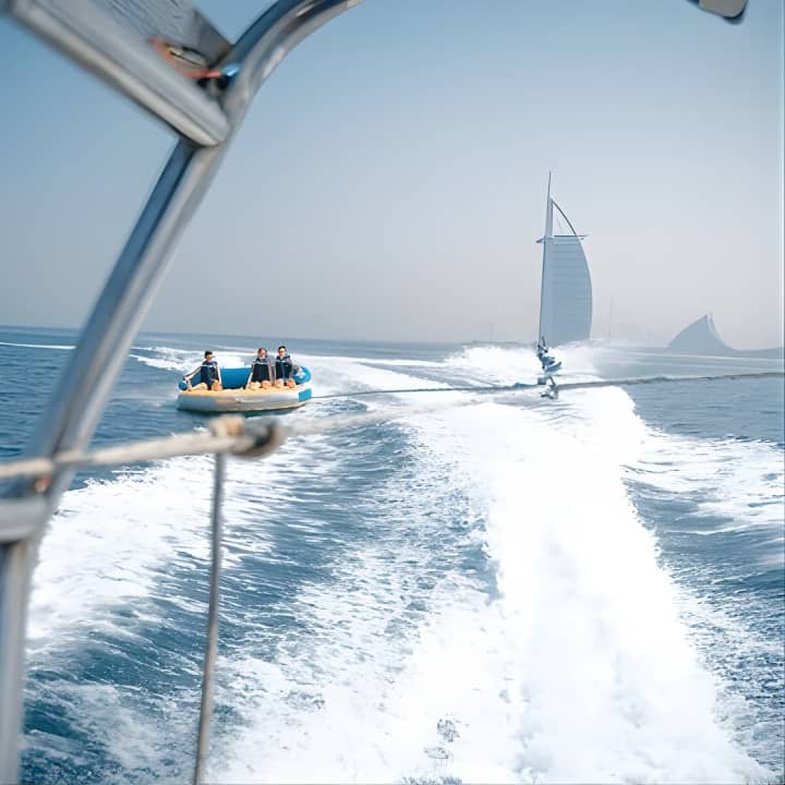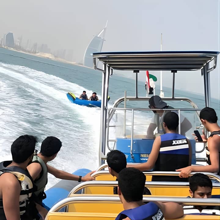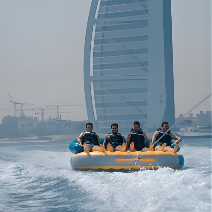 Grab your squad or family for an epic 60-minute tubing adventure in Dubai! With room for 8 on our speedboat, take turns riding the waves while the rest chill and soak in stunning views, including the iconic Burj Al Arab - perfect for those holiday snaps and videos. Get your tickets for Private 60-min Group Tubing on Speedboat in Dubai!