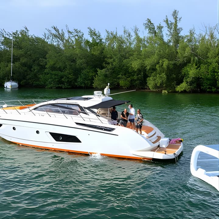 Dive into luxury on board our 52' Azimut Yacht, where elegance meets thrill! Imagine lounging under the sun or in the shade, with every detail crafted for unforgettable moments. With a sporty vibe, open spaces, and a deck designed for pure enjoyment, it's your sea escape with style. Chill by the helm station, feast at the large table, or grab a cold drink from the fridge. This yacht's got everything, including a hidden TV for those who want it all. Get your tickets for 52' Azimut Yacht Charter with Captain and Mate!
