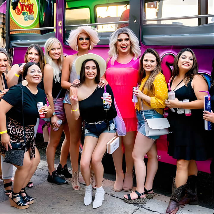Hey party people! Nashville's nightlife just got a major upgrade with our unique party bus experience. Imagine cruising through downtown with the fiercest Drag Queens leading the way, serving up live entertainment that you won't find on any other ride. From hilarious games to epic performances, all while you sip on your favorite adult beverages - it's non-stop fun. Laugh, sing, and dance your way through the night. Remember, it's drinks on deck as we don't offer BYOB. Get your tickets for Nashville Party Bus with Drag Queen Hosts & Live Performances!