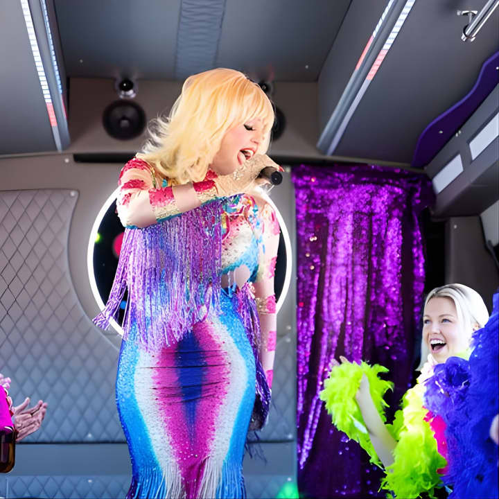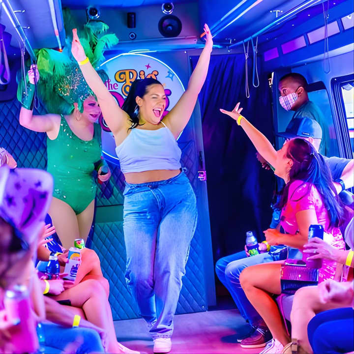 ✔️ Enjoy a 90-minute party bus adventure with drag queen hosts & live performances.
