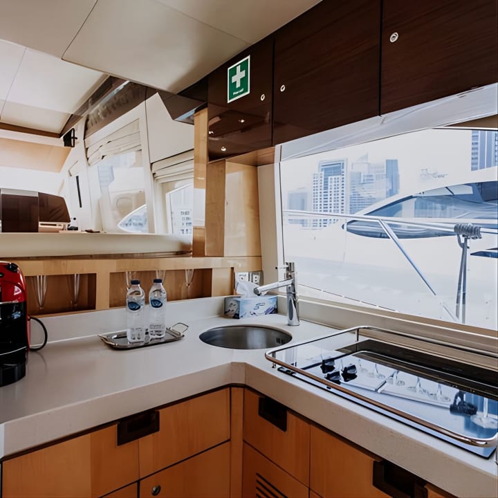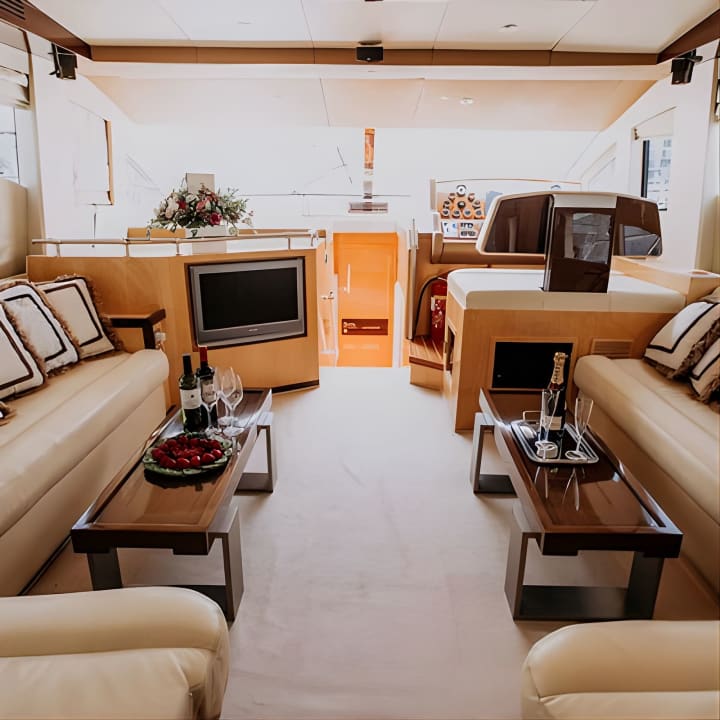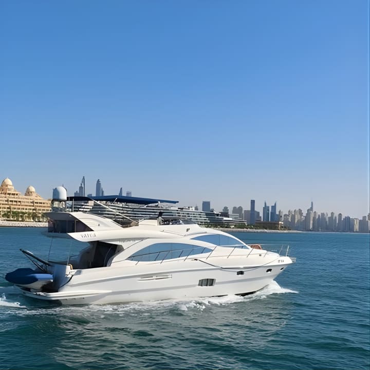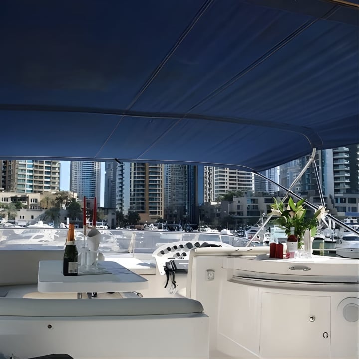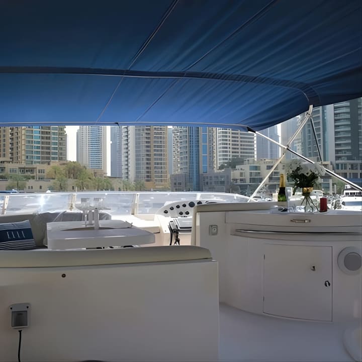 Set sail on Dubai's glistening waters aboard the stunning Vassia, a 56 ft luxury yacht that can host up to 21 guests. Whether it's a dreamy date or a lively outing with pals, we've got you covered with unbeatable deals. Glide past iconic landmarks from Marina to the majestic Atlantis the Palm, sipping on complimentary beverages and chilling with your own snacks. Open 24/7 for your convenience. Get your tickets for Yacht Trip Dubai: Book 56 ft Premium Yacht up to 21 people!