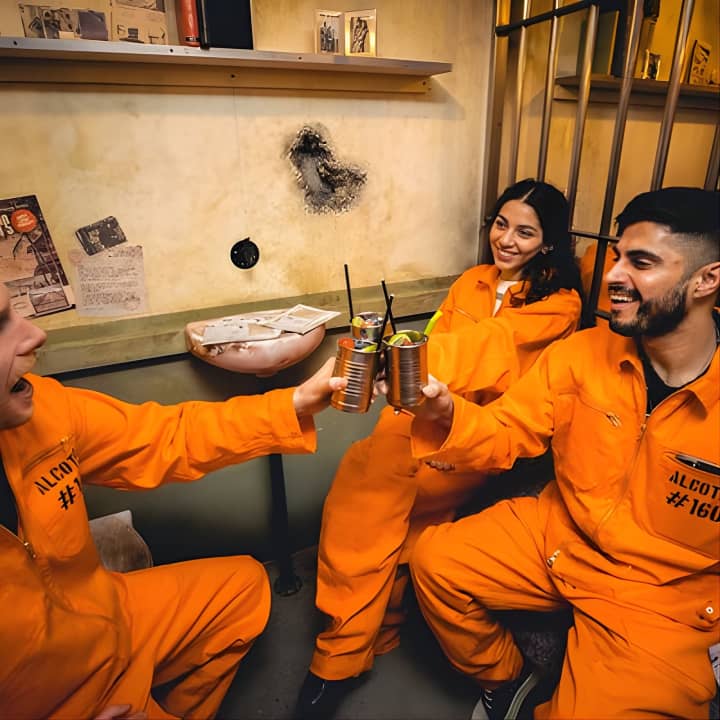Dive into an immersive cocktail adventure like no other at Alcotraz, Brighton's first theatrical bar inspired by America's most notorious prison tales! Don your orange jumpsuits, step into real metal cells, and get ready for a night of clandestine fun. There's no drink menu here—your smuggled booze gets transformed into unique cocktails by the crafty inmates, all based on your personal preferences. Get creative with your smuggling, or team up with Inmate Cassidy to keep the guards in your pocket, but watch out for the Warden! Get your tickets for Alcotraz Prison Cocktail Experience in Brighton!