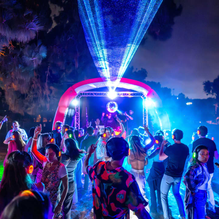 Become part of this one-of-a-kind Silent Disco Festival Experience. Slip on the high-fidelity headphones and choose between 5 audio channels, where 5 DJs on 5 different stages will be spinning tunes and dropping beats in studio-quality sound. With a total of 8 rotating DJs, this event features a wide range of music genres, so there’s something for everyone! As the sun sets and the headphones light up in different colors depending on the audio channel, you can easily connect and dance with others listening to the same music. Laser lights, haze machines, and disco balls add to the magic, promising an evening of unforgettable fun. Get your tickets now for Sunset Vibes at The Penmar in Venice, an unforgettable evening of music, dance and fun! All ages welcome!
