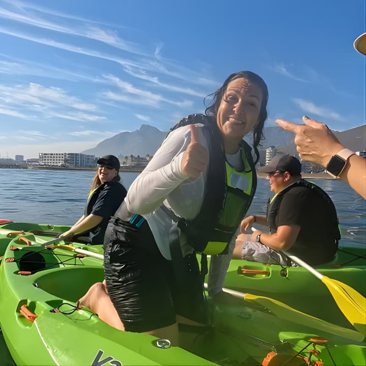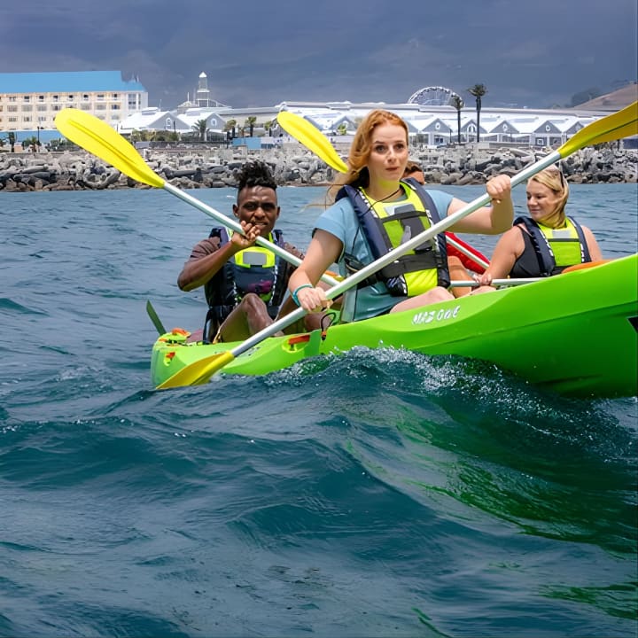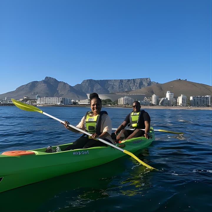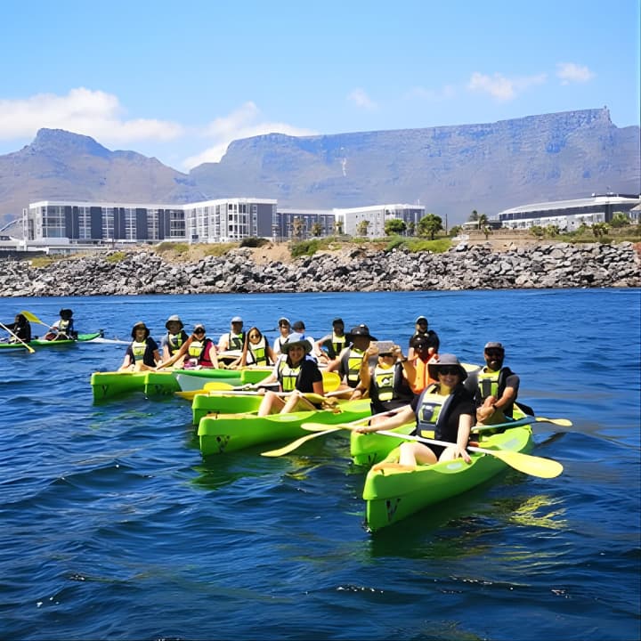 Dive into the ultimate Cape Town Sea Kayaking Adventure launching from V&A Waterfront! Our beginner-friendly, super stable sit-on-top kayaks are perfect for everyone. Feel free to take a swim and hop back in with ease, thanks to our helpful guides. Enjoy a relaxed paddle, soaking in the stunning views and fresh ocean breeze. No need to rush—just savor the moment! Get your tickets for Cape Town Sea Kayaking Adventure launching from V&A Waterfront!