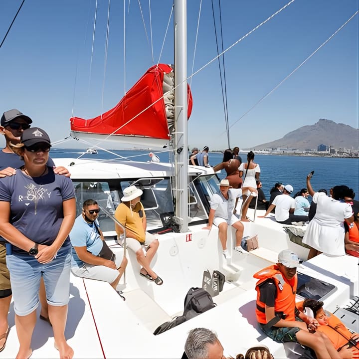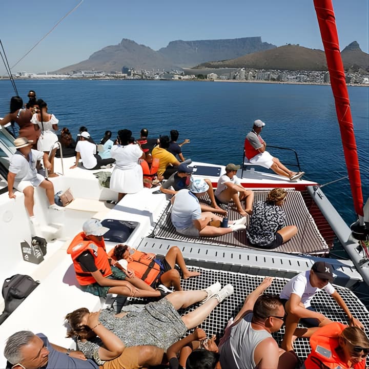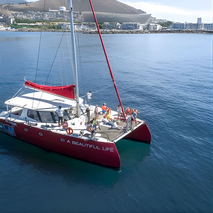Kick back and unwind on an epic 1-hour catamaran cruise from the V&A Waterfront towards Clifton beach aboard "A Beautiful Life." Groove to ambient tunes with the stunning Table Mountain as your backdrop. Catch the best views of the V&A Waterfront, Cape Town harbour, Table Bay, and Robben Island. This 53ft beauty, built in 2021, offers comfy seating for up to 60 passengers with shady spots to chill. Get your tickets for 1-Hour Catamaran Cruise Cape Town!