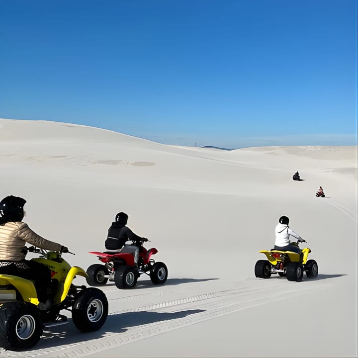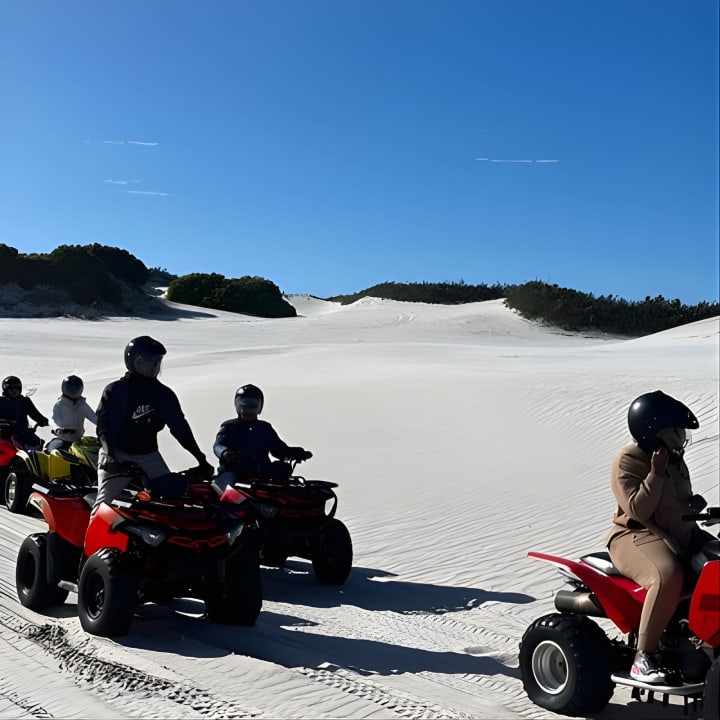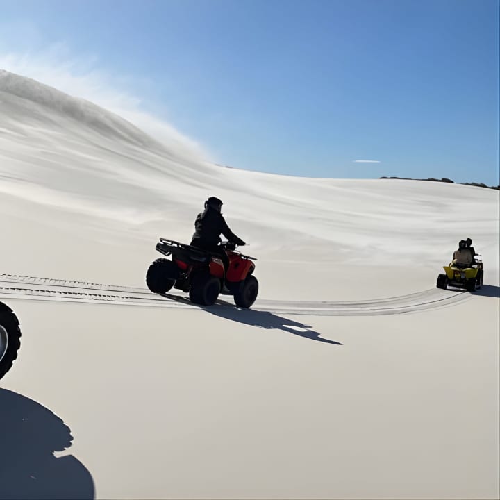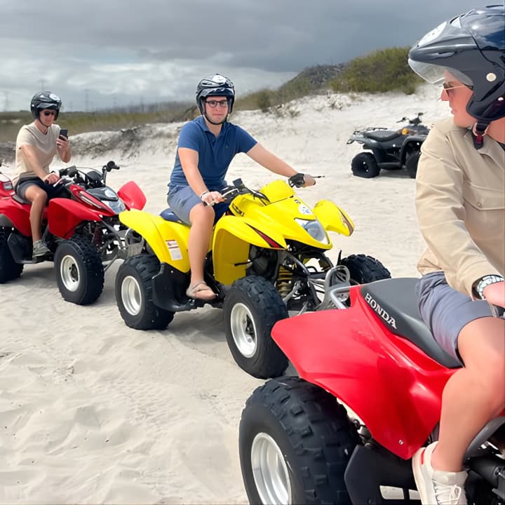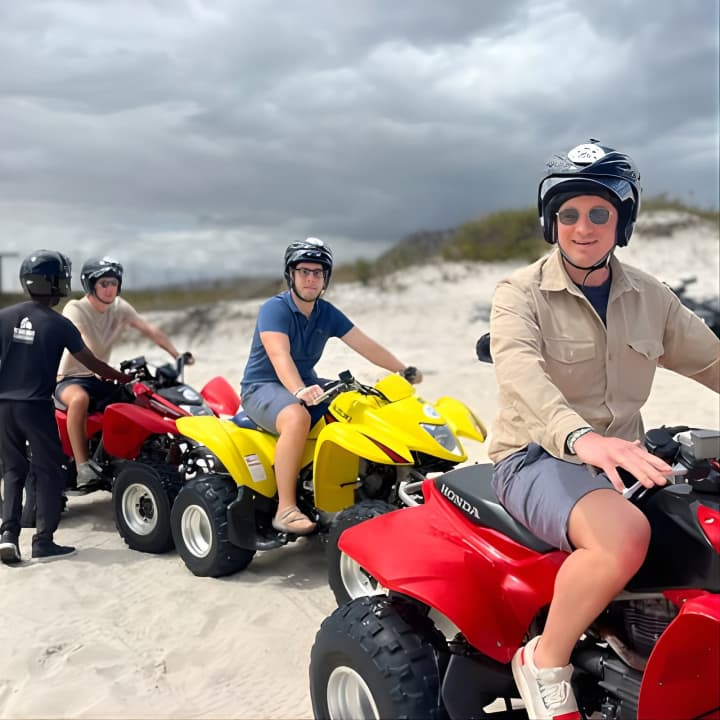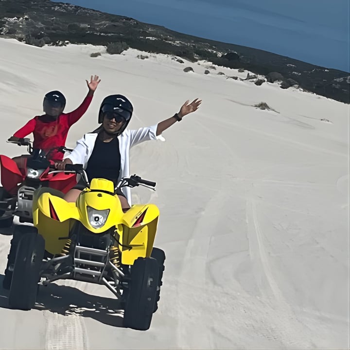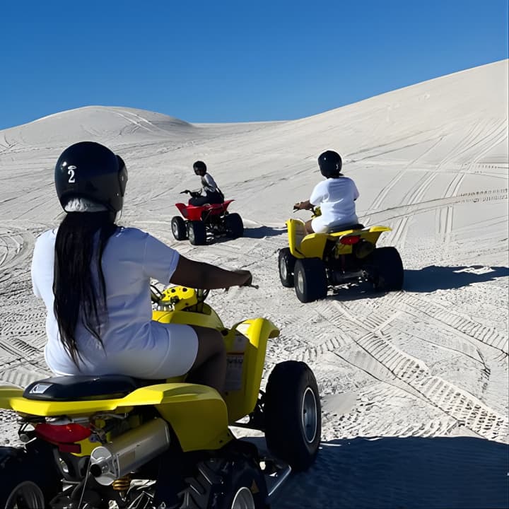 Ready for the ride of your life? Our Atlantis Dunes Quad Bike tours offer lightning-fast bikes that are super easy to handle. We'll snap epic pics of your adventure and send them straight to you via airdrop or email. Our awesome team is always on hand to keep your belongings safe while you tear up the dunes. Get ready for an unforgettable experience! Get your tickets for Atlantis Dunes Quad Bike tours!