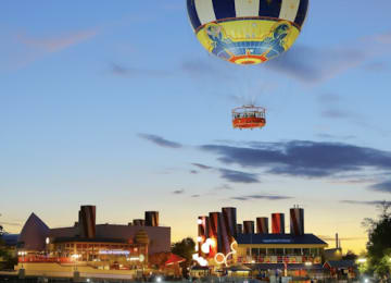 Prépare-toi à t'élever à 100 mètres au-dessus de Disney Village® pour un vol en montgolfière de six minutes qui te permettra d'admirer Disneyland Paris et ses environs. Après avoir vu de haut le château de la Belle au Bois Dormant et les milliers de fans du parc, un treuil électrique te ramènera sur terre. Cette énorme montgolfière Disney peut accueillir jusqu'à 30 passagers en même temps, permettant aux familles et aux groupes d'amis d'admirer la vue ensemble. Achète tes billets pour ce vol en montgolfière PanoraMagique à Disney® Village !