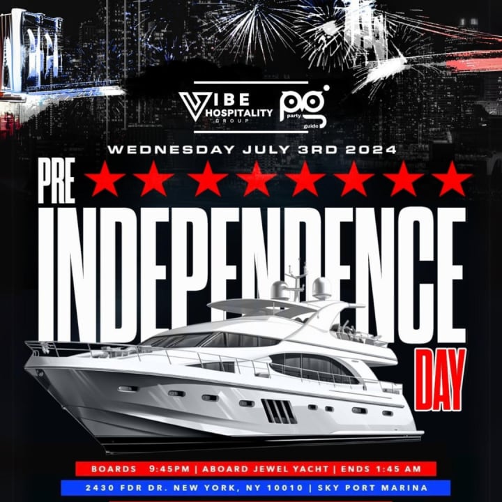 Get ready for a Pre-Independence Day Yacht Party on the Jewel Yacht, NYC’s premier floating nightclub! Enjoy dazzling views, pulsating music, and top-notch entertainment while cruising around the city. The Jewel Yacht, NYC's only fully equipped nightclub and cruise experience, features advanced technology, LED dance floors, and a top observation deck, half-covered for comfort. This iconic 2-deck yacht offers one indoor floor with panoramic windows and an outdoor deck to savor the refreshing breeze and starlit sky. Don't miss out on one of the most anticipated Independence Day events! Get your tickets now!
