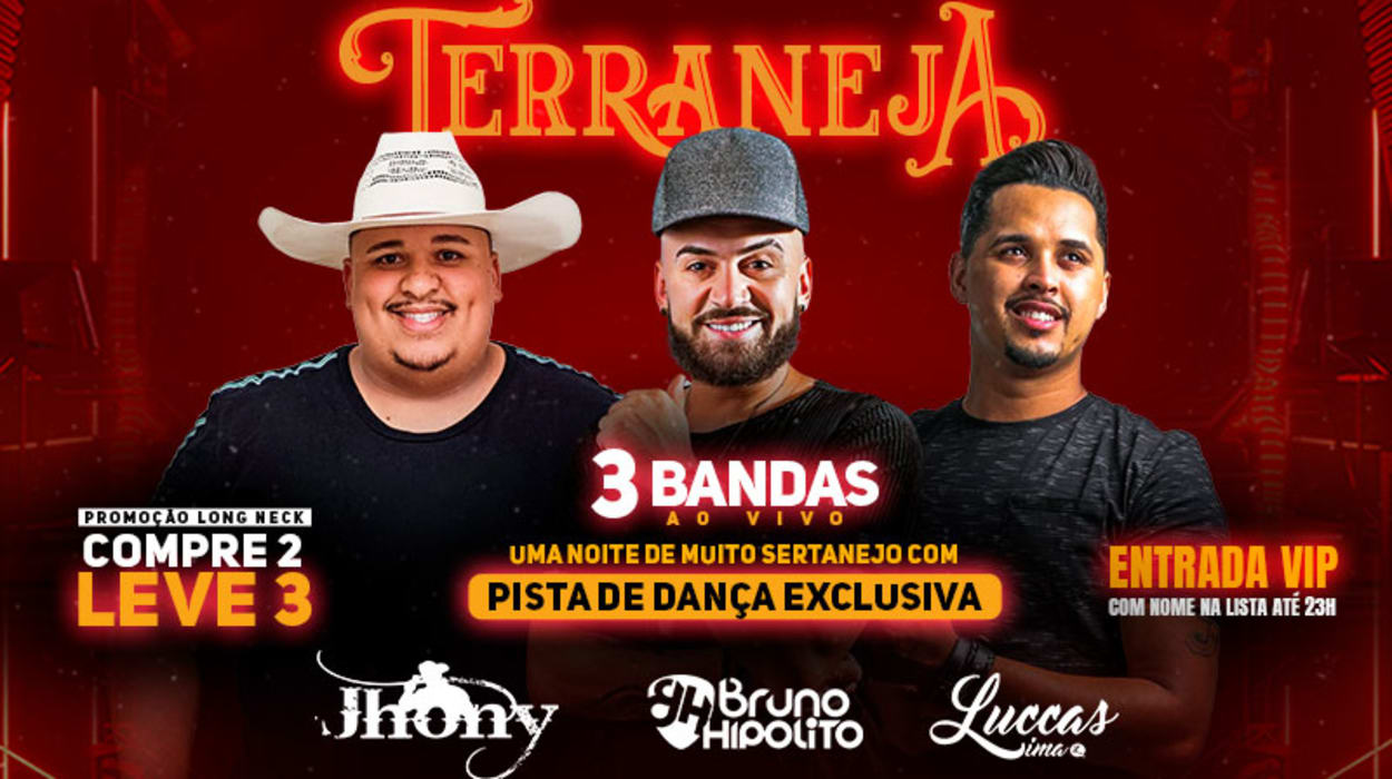 Show Terraneja com Bruno Hipólito, Jhony Quadros e Luccas Lima no Terra SP 🎉 A noite mais sertaneja de SP já tem data marcada!