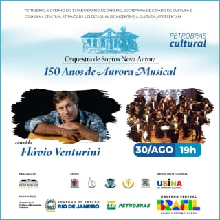 O Theatro Municipal do Rio de Janeiro receberá no dia 30 de agosto, a partir das 19h, a Orquestra de Sopros Nova Aurora - OSNA para o quarto concerto do projeto “150 anos de Aurora Musical”. A apresentação terá como convidado especial o cantor e compositor Flávio Venturini.
