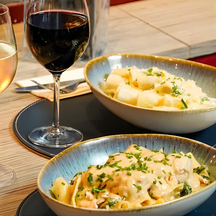 ✔️ Una deliciosa escapada en crucero por el Sena acompañada de pasta fresca italiana: antipasti como entrante, 4 recetas diferentes de pasta fresca como plato principal y tiramisú de postre.
