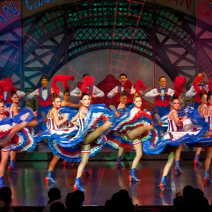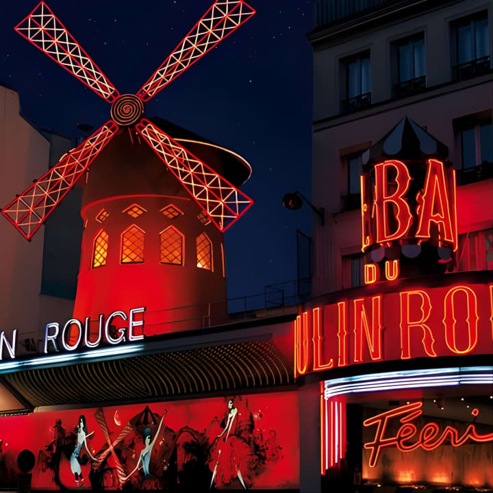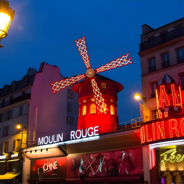 🎭 Discover authentic French culture and cuisine at the iconic Moulin Rouge cabaret in Paris.