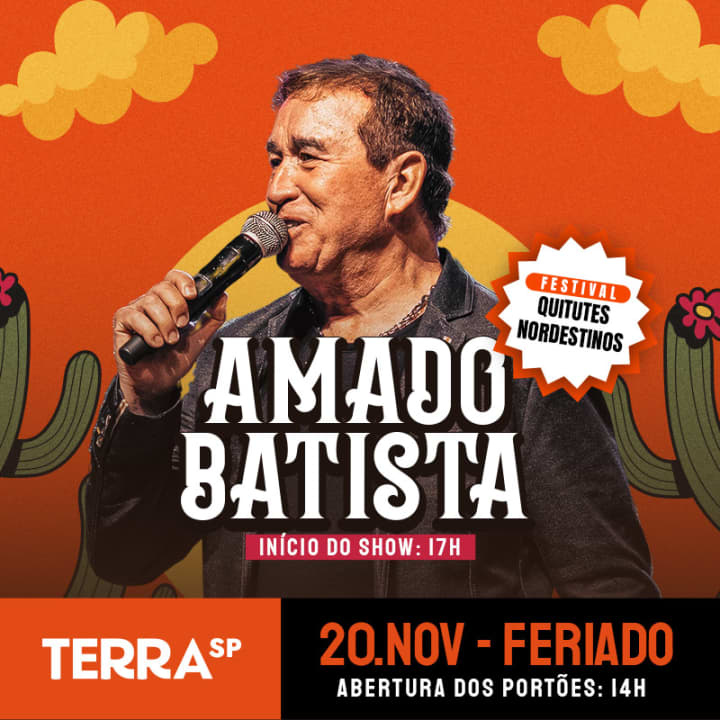 Show do Amado Batista no Terra SP ⭐ Amado Batista, o cantor mais querido do Brasil volta aos palcos para uma tarde especial no Terra SP, com muito romantismo, nostalgia e música boa, embalando o Festival de Quitutes Nordestinos, com sua voz inconfundível para todas as Princesas e Príncipes de São Paulo! 😍