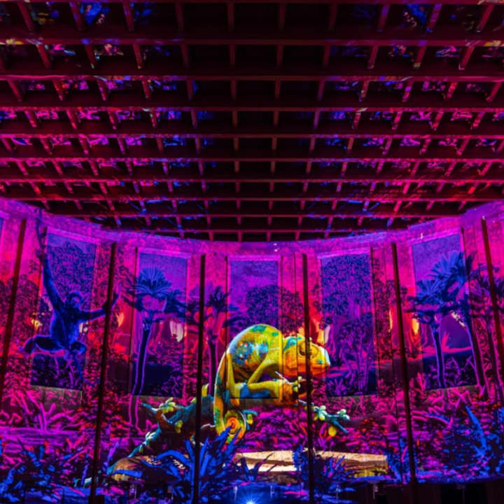 Vom Flughund und Gorilla, über das Chamäleon und Pfeilgiftfrösche bis hin zum Tiger und Faultier – das Künstlerkollektiv Projektil lässt dich in ihrem Raumzeitgleiter die verschiedensten Urwälder unserer Welt entdecken. Lerne spielerisch mehr über die facettenreiche Artenvielfalt des Dschungels und die grossen Zusammenhänge der Natur. Ein immersives, audiovisuelles Erlebnis für die ganze Familie. Sichere dir jetzt deine Tickets für Pixel Zoo Jungle in Zürich!