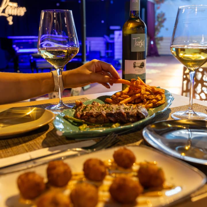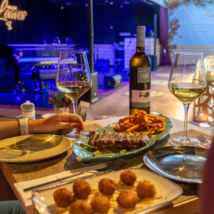 Evenings at Leaves Restaurant are to let yourself be carried away by the best gastronomy together with live music. A wide range of concerts to break the monotony and enjoy a special evening. A plan for two in which you can enjoy a bottle of white-green wine D.O. Rueda with a delicious snack, where you can't miss the Croquettes with farmhouse milk: jerky or shrimp and a Tataki of matured beef tenderloin with sweet potato chips. Get your tickets for: Live music with a bottle of wine and snacks at Leaves Restaurant, Madrid!